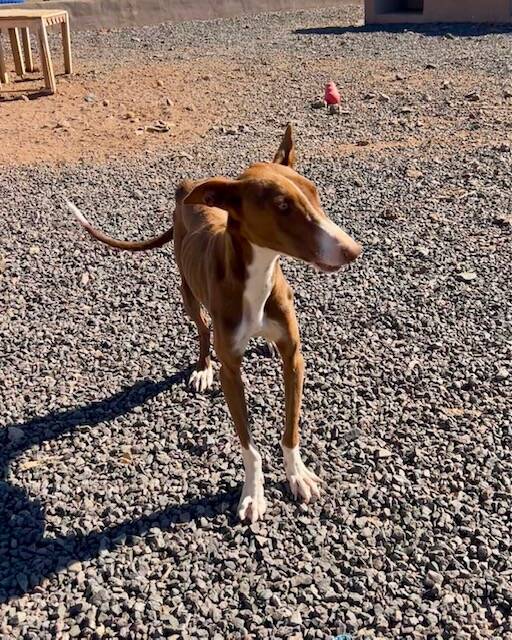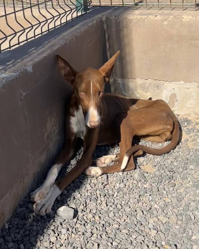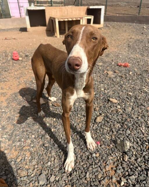 Kaia ist eine zarte, sensible Podenca mit einer bewegenden Geschichte. Zum ersten Mal trafen wir sie in der Perrera von La Pared. Dort saß sie eng zusammen mit anderen Hunden in einer Zelle – still, eingeschüchtert und kaum sichtbar zwischen den anderen. Schnell war klar, dass wir ihr helfen möchten und sie durfte auf der Finca Zoe einziehen. Beim Herausholen zeigte sich zudem, wie abgemagert sie war.
