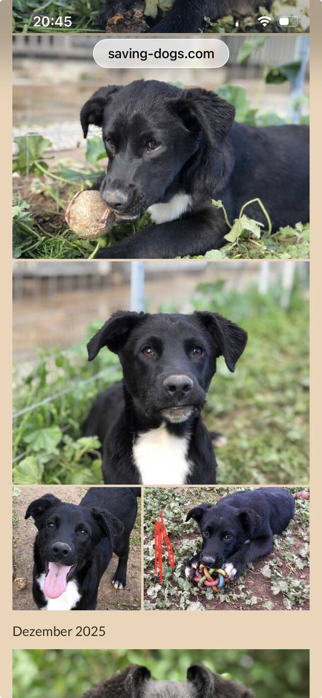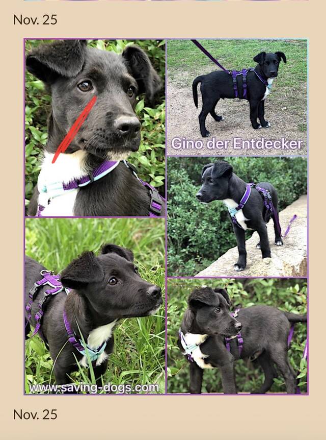„Für Gino wünschen wir uns Menschen, die ihm Zeit, Nähe und Sicherheit schenken können. Gino ist ein unglaublich lebensfroher und aktiver junger Hund, der mit Begeisterung durch den Garten und durch die Wälder flitzt. Spielen gehört zu seinen größten Leidenschaften - besonders gerne kaut er auf Stöcken ! ( Vorsicht ! hier sollten ihm passende Alternativen angeboten werden). Auch Wasser liebt Gino sehr und hat seine Schwimmkünste bereits erfolgreich in einem See getestet. Im Haus zeigt er seine entspannte Seite. Altersbedingt hat er noch den ein oder anderen Schabernack im Kopf, ist aber insgesamt ein angenehmer Mitbewohner. Besonders wichtig ist ihm die Nähe zu seinen Menschen - am liebsten würde er den ganzen Tag kuscheln. Autofahren meistert Gino problemlos und liegt ruhig und entspannt in seiner Box. Auch Stadtgeräusche oder etwas Trubel machen ihm nichts aus; er zeigt sich insgesamt nicht besonders ängstlich. In neuen Situationen könnte ihm jedoch ein souveräner Ersthund zusätzliche Sicherheit geben. Er ist bereits weitestgehend stubenrein, mit nur wenigen Ausnahmen. Ein Thema, an dem noch gearbeitet werden darf, ist sein Wach- und Territorialverhalten. Manchmal möchte er zeigen was für ein großartiger „Aufpasser“ er ist und typisch für einen „Teenager“ schießt er etwas über das Ziel hinaus … Im direkten Kontakt zeigt er sich jedoch sozial, verträglich und keineswegs dominant. Mit seinem fünfjährigen Labrador-Freund versteht er sich hervorragend und orientiert sich stark an ihm. Er ist weitestgehend stubenrein, mit nur wenigen Ausnahmen. Aktuell kann man ihn ca. zwei Stunden für Besorgungen auch schon mal allein lassen …. Besonders, wenn man ihn zuvor körperlich etwas ausgelastet hat. Gelegentlich zeigt Gino Ressourcenverteidigung, zum Beispiel bei Spielzeug. Dieses Verhalten hat sich jedoch mittlerweile verbessert. Als „pubertierender“ Junghund ist es ganz normal, dass er die „Grenzen“ austestet. Ein freundlicher, nicht dominanterErsthund/ Hündin an seiner Seite würde ihm gefallen, ist aber kein „muss“. Der Besuch einer Hundeschulewird helfen seine Talente herauszufinden und weiter zu fördern. Kinder im „standfesten“ Alter können wir uns gut vorstellen. Ein lückenloseingezäunter Garten, in dem er sich austoben darf, ist gewünscht. Allerdings ! Kein Garten ersetzt die gemeinsame Spaziergänge - oder Wanderungen.“