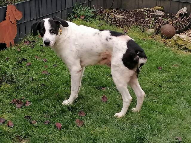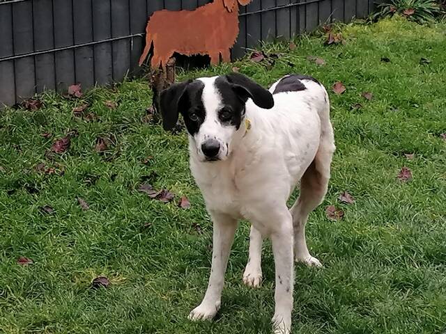 Beschreibung: Update 03.02.26- Neues von Yoda Yoda taut ganz langsam auf, Schrittchen für Schrittchen. Die 8 langen Jahre im Canile, ohne jeden Außenreiz, kann man nicht über Nacht ungeschehen machen; sie haben den schüchternen Rüden nachhaltig geprägt. Deshalb möchten wir gerne seine positive Entwicklung hervorheben, die stetig im Fluss ist und wächst! Die Ausgangslage: Yoda hatte unverschuldet einen schweren Start: Bei Ankunft war er völlig überfordert mit all den neuen Eindrücken, die auf ihn einprasselten. Geschirr anlegen war ihm suspekt, da wich er aus. Dann kam Silvester, für ihn der Supergau. Schon Tage vorher ging es los mit der Knallerei, bis einige Tage nach dem Jahreswechsel. Yoda hatte verständlicherweise Angst, in den Garten zu gehen. In seiner Not löste er sich deshalb einige Zeit langin der Wohnung. Sein Futter nahm er ausschließlich vor seinem Hundebett an und fraß nur, wenn er allein war und niemand ihn beobachtete. Ein ganz typisches Verhalten bei einem unsicheren Hund. Spiegel waren ihm so unheimlich, dass er sich nicht traute, daran vorbeizugehen. Yodas Pflegemama ist erfahren und ließ sich etwas einfallen: Sie klebte kurzerhand Fensterfolie auf die Spiegel und schon war das Leben etwas leichter.