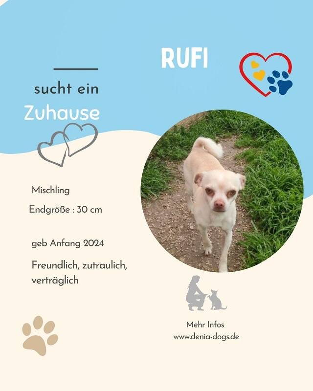 Beschreibung: Rufi ist ein kleiner, liebenswerter Goldjunge auf der Suche nach seinen Menschen. Er lebt derzeit in unserer Auffangstation und zeigt sich dort als fröhlicher, liebenswerter junger Hund. Rufi ist sehr freundlich, offen und genießt die Nähe zu Menschen – er kennt keinerlei Vorbehalte und freut sich über jede Zuwendung. Mit anderen Hunden ist er gut verträglich, bei Rüden entscheidet wie so oft die Sympathie. Als junger Hund möchte Rufi die Welt entdecken, Neues lernen und gemeinsam mit seinen Menschen wachsen. Auch wenn er klein ist, braucht er liebevolle Erziehung, klare Orientierung und Beschäftigung. Nach einer kurzen Eingewöhnungszeit wird Rufi ein wunderbarer kleiner Begleiter sein, der seine Menschen gerne begleitet. Hat Rufi Euer Herz erobert ? Meldet Euch gerne bei seiner Vermittlerin