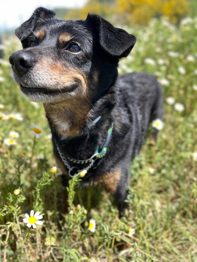 Trotz ihres Alters ist Mary alles andere als eine typische Seniorin: Sie ist aktiv, geht gerne spazieren, läuft noch richtig flott und genießt Ausflüge – besonders ans Wasser. Mit ihrem flauschigen Fell und ihrer kleinen Vorliebe für gutes Essen ist sie einfach eine charmante Hundedame.