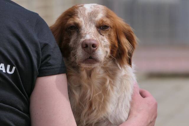 Name: Roccia (ab 23.05.2026 in Pflege in 53919 Weilerswist) Geboren: ca. 01.01.2023 Rasse: Bretonen-Mischling Geschlecht: männlich Schulterhöhe: ca. 39 cm Gewicht: - Kastriert: ja Geimpft: ja Gechippt: ja Farbe: weiß-rotbraun Mittelmeerkrankheiten: Leishmaniose positiv – in Behandlung, Rest folgt nach Einreise Krankheiten: siehe Mittelmeerkrankheiten Katzenverträglich: unbekannt Hundeverträglich: ja Kinder: unbekannt Handicap: nein Aufenthalt: ab 23.05.2026 in Pflege in 53119 Weilerswist