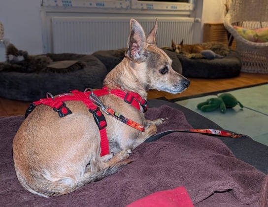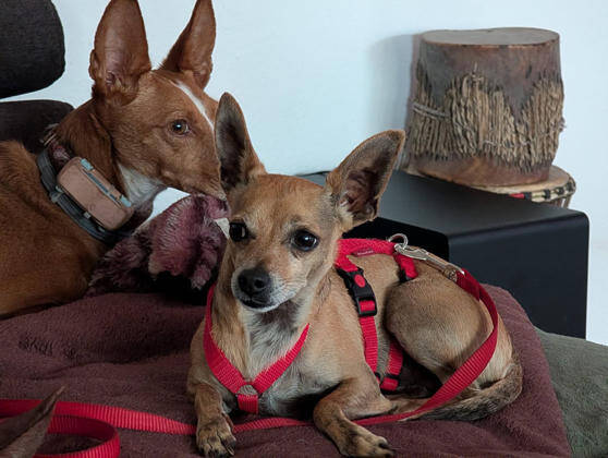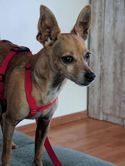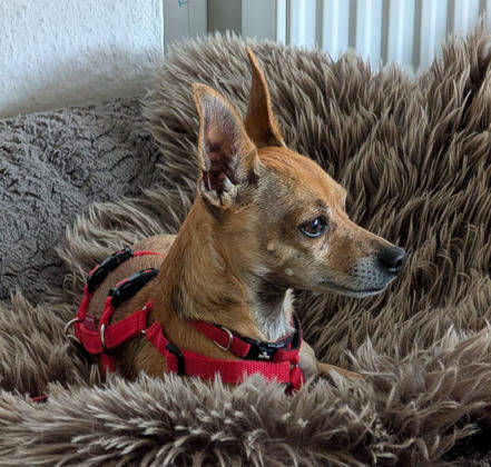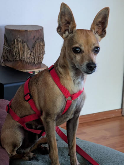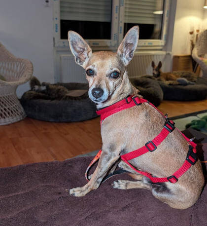 Wir vermuten in Dani2 einen Pinscher/Chihuahua Mischling. Der Pinscher gilt als temperamentvoll und aktiv, sie haben einen ausgeprägten Jagdinstinkt und einen hohen Bewegungsdrang, dabei sind sie ihren Familien treu ergeben und sehr klug. Als ehemaliger Hofhund sind sie außerdem aufmerksam. Der Chihuahua ist ein charmanter kleiner Hund, er steht gerne im Mittelpunkt und fordert die Aufmerksamkeit seines Herrchens notfalls auch ein. Selbstbewusst und mutig und ein wenig Selbstüberschätzung treiben ihn dazu sich manchmal sogar gegenüber weitaus größeren Hunden aufzuspielen. Er ist aber auch sehr intelligent und schmust gerne Zuhause – Voraussetzung ist, dass er vorher sowohl körperlich als auch geistig ausgelastet wurde.