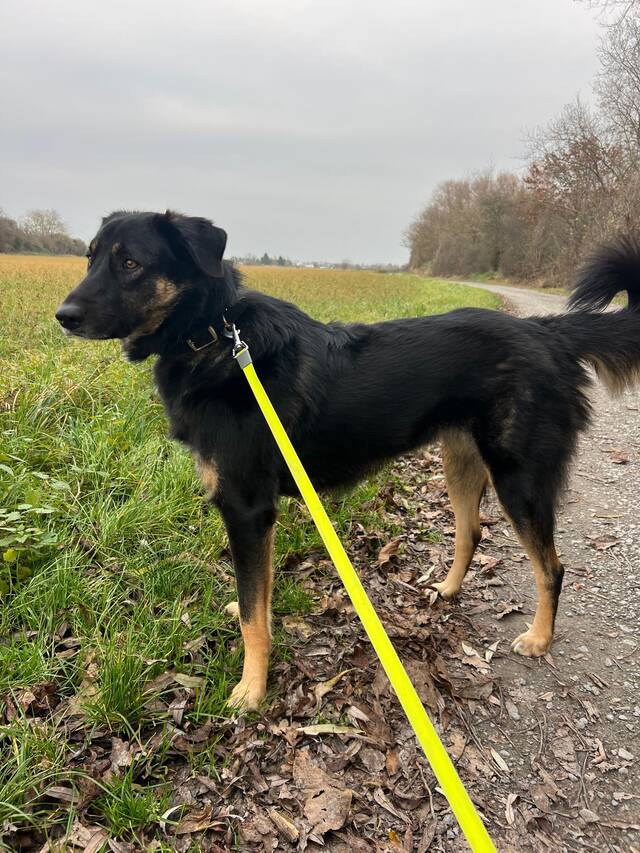 Im Umgang mit anderen Hunden ist Lille noch etwas unsicher. Sie möchte inzwischen häufiger Kontakt aufnehmen, braucht aber weiterhin Unterstützung, da sie bei Begegnungen auch mal „laut“ werden kann. Mit Training und Geduld ist das gut in den Griff zu bekommen.