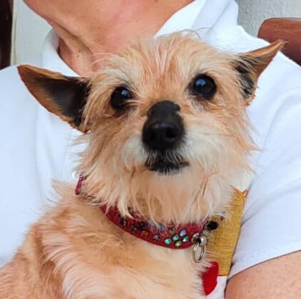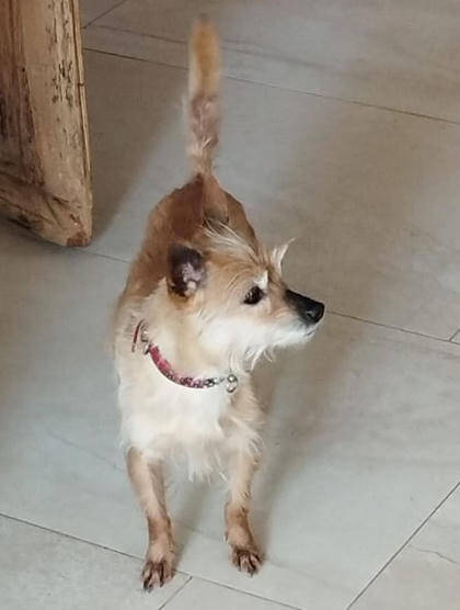 Die Hündin ist ein Yorkshire Terrier (-Mischling), diese Hunde sind trotz der eher geringen Größe sehr mutig und selbstbewusst. Sie sehen niedlich aus aber Terrier benötigen klare Regeln und eine konsequente Erziehung sonst wird ihr Mut, die Neigung zur Selbstüberschätzung, ihr Instinkt zu beschützen und ihre Jagdfreude schnell zu einem Problem. Wenn Sie aber einen aktiven, lustigen Hund suchen, der ein richtiger Partner im Alltag werden kann, dann ist ein Terrier immer eine Überlegung wert, denn mit diesen zumeist intelligenten und lebhaften Hunden kann man durch dick und dünn gehen.