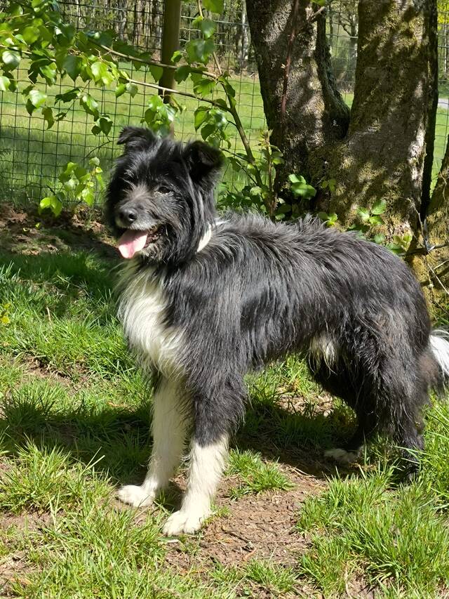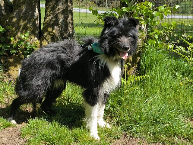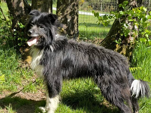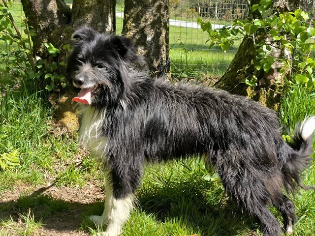 Wunderschön, sehr lieb und freundlich, supergut mit anderen Hunden verträglich, das ist der Border Collie-Mix Atlas, der sich bei Sonia und Carmen in der Protectora befindet. Er tauchte plötzlich in einem Dorf auf und schlich, vollkommen ausgehungert, um die Häuser, um etwas zu fressen zu finden. Vorher wurde Atlas beobachtet, wie er mehrere Tage lang in der Nähe des Dorfes ganz allein und verlassen durch die Felder lief.