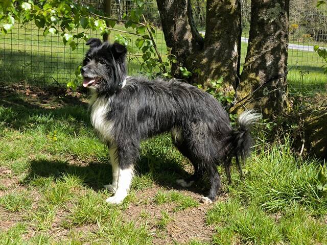 Atlas ist ca. 2-3 Jahre alt und ca. 50 cm groß. Er ist außergewöhnlich hübsch und zeigt einige typische Eigenschaften eines Border Collies (er ist ein aktiver und intelligenter Hund, der sehr gerne lernt und schnell alles begreift).
