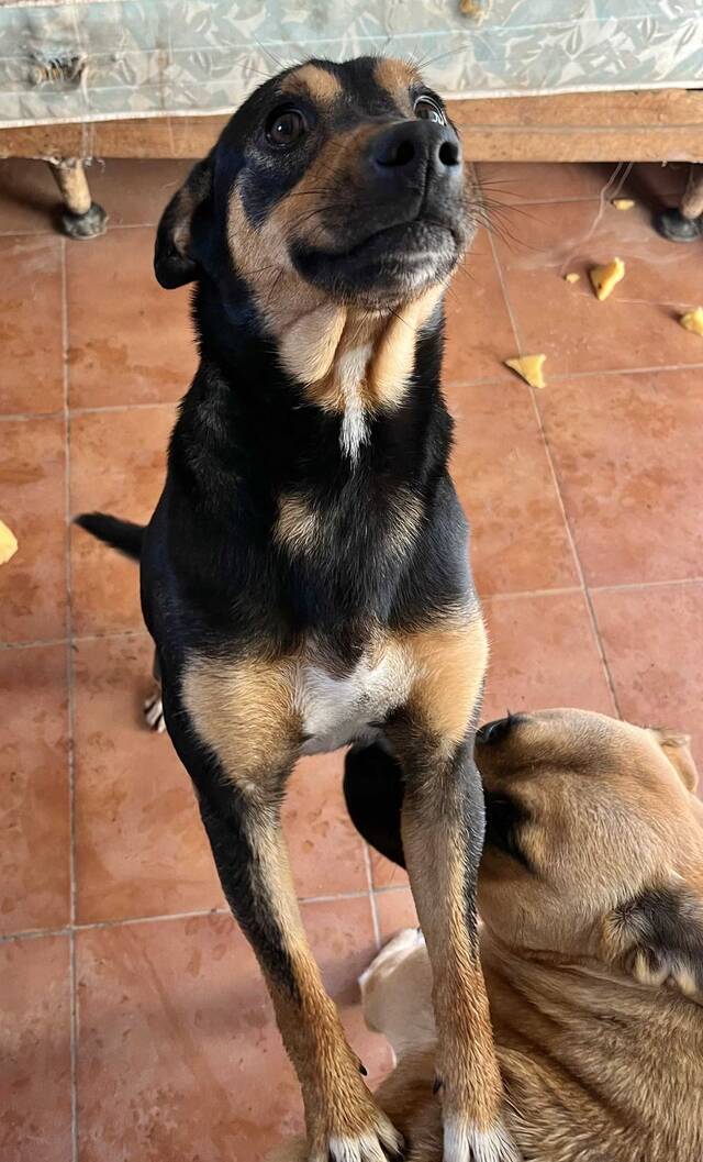 Zusammen mit meinen Freundinnen Margot und Naomi wurde ich an den Bahngleisen gefunden, ganz in der Nähe des Refugios. Warum wir dort gelandet sind, weiß ich nicht – wir hatten wohl mal ein Zuhause, aber wir waren nicht gechippt und so hat uns niemand vermisst. Zum Glück hat uns die Gemeinde eingesammelt und zu den lieben Menschen hier gebracht.
