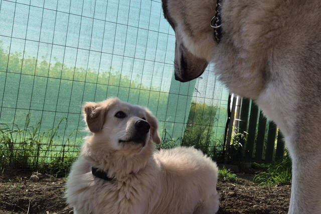 Das Zusammenleben mit vielen Hunden und dem damit verbundenen Trubel meistert Gigio gut. Aufgrund seiner gelähmten Rute fällt ihm die Kommunikation schwerer als anderen Hunden, dennoch funktioniert das Miteinander täglich besser. Besonders ins Herz geschlossen hat er seinen „Pflegebruder“ Luca, einen drei Monate alten Welpen, um den er sich rührend kümmert.