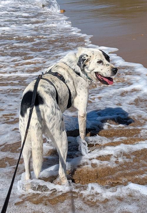 Juli 2023: Pontos wurde geschätzt im Juni 2021 geboren und wiegt aktuell 21kg bei ca. 60cm Schulterhöhe. Er wurde zu seiner eigenen Sicherheit im Tierheim aufgenommen. Pontos zeigt sich im Tierheim als sehr freundlich zu anderen Hunden und Menschen. Er kennt es schon an der Leine zu laufen und freut sich nun auf nette Adoptanten!