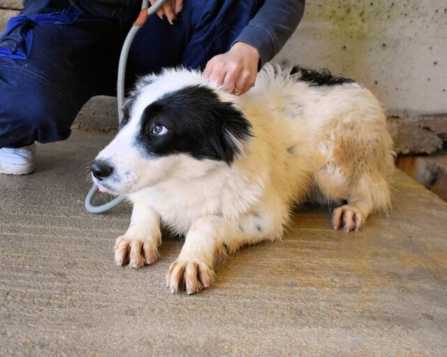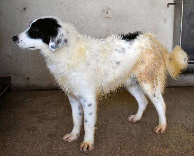 Noch wirkt Jovian kerngesund. Er ist ein neugieriges Hundekind und als die Tierschützer ihn zum ersten Mal besuchen kommen, ist er natürlich erst einmal vorsichtig. Dann aber taut er schnell auf und verteilt eifrig schmatzende Hundeküsschen.