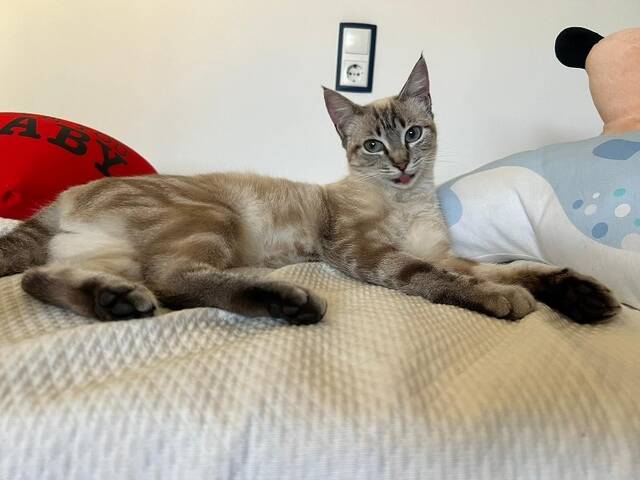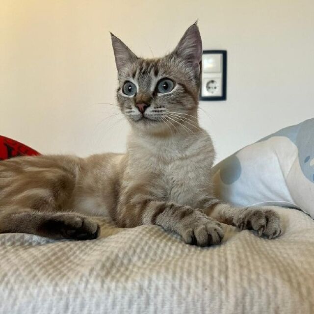 Beschreibung:Kenia ist eine wunderschöne Katze mit einer ganz aparten Fellzeichnung. Sie ist freundlich, aufgeschlossen und sehr verschmust. Kenia mag Kinder sehr gerne. Mit ihren Katzenkumpeln versteht sie sich sehr gut. Kenia wünscht sich eine Familie mit vielen Kuscheleinheiten und Beschäftigung. Darf Kenia bei Euch einziehen ?