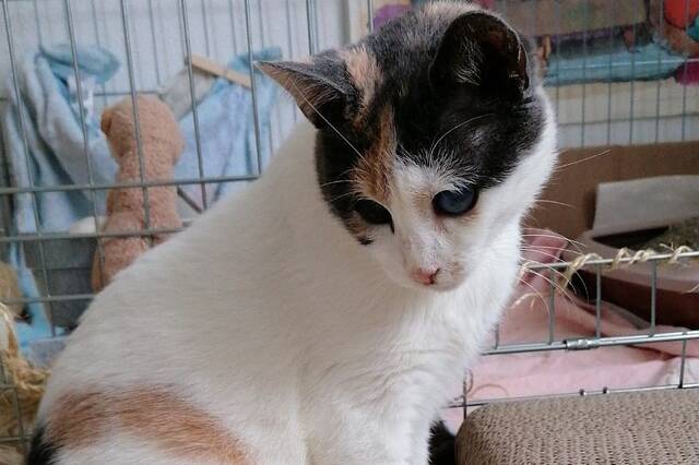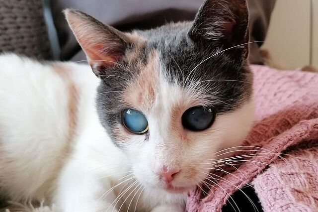 Name: Stella-Lucia Geboren: ca. 15.04.2022 Alter: ca. 2 Jahre Rasse: EKH Geschlecht: weiblich Kastriert: ja Geimpft: Katzenschnupfen/ -seuche, Tollwut Gechippt: ja Farbe: tricolor Katzenaids (FIV): negativ Leukose (FeLV): negativ Krankheiten: nicht bekannt Handicap: blind Katzenverträglichkeit: ja Hundeverträglichkeit: unbekannt Kinder: unbekannt Aufenthaltsort: 40599 Düsseldorf