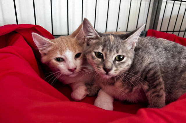Name: Peppy Tilly Geboren: ca. 20.05.2025 Alter: ca. 4 Monate Rasse: Europäisch Kurzhaar Geschlecht: männlich weiblich Kastriert: nein Geimpft: Katzenschnupfen/Katzenseuche Gechippt: ja Farbe: rot-weiß grau getigert Katzenaids (FIV): negativ Leukose (FeLV): negativ Krankheiten: keine bekannt Handicap: nein Katzenverträglichkeit: ja Hundeverträglichkeit: unbekannt Kinder: unbekannt Aufenthaltsort: Tierauffangstation, Sardinien