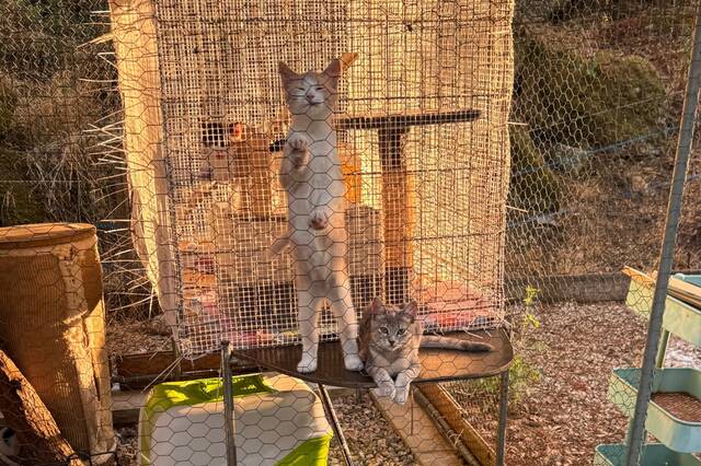 Was ist mir passiert? Mitte Juli, bei glühender Hitze, hörte eine tierliebe Einheimische aus Budoni wiederholt leises, klagendes Miauen. Tagelang suchte sie – bis eine erschöpfte Mutterkatze ihre Kitten direkt in ihren Vorgarten legte. Ein stummer Hilferuf. Die ersten drei Kitten waren in einem erbärmlichen Zustand: abgemagert, dehydriert - mit verklebten, entzündeten Augen und unterkühlt – trotz 36 Grad Außentemperatur! Wir haben sofort reagiert. Mutterkatze und ihre drei Babys wurden in die Tierklinik gebracht, stabilisiert und anschließend auf unsere Katzenstation überführt. Doch das verzweifelte Miauen hörte nicht auf... Tatsächlich fanden wir noch zwei weitere Kitten, verborgen im Dickicht. Für eines von ihnen kam jede Hilfe zu spät. Während die Mutter sich erholte, kastriert und wieder freigelassen werden konnte, kämpften die vier übrigen Kitten um ihr Leben. Ein kleines Mädchen kam leider nicht zu Kräften und verstarb trotz all unserer Bemühungen, sie zu retten. Doch die übrigen drei Kitten – Peppy, Tilly und Fanny – haben es geschafft. Sie werden stärker, größer und mutiger und schon bald sind sie bereit für ihre große Reise ins Glück. Wo bin ich? Peppy und Tilly befinden sich in unserer Tierauffangstation auf Sardinien.