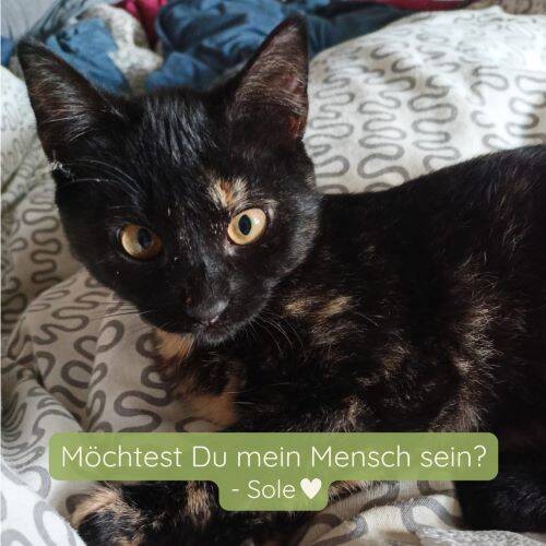Vermittlungshilfe Sole – findet sie endlich ihre eigenen Menschen? Die zauberhafte kleine Schildpattkatze hatte einen schlechten Start ins Leben: Nachdem ihre Mutter, eine herrenlose Straßenkatze, überfahren und getötet wurde, sah es sehr düster für Sole und ihre Geschwister Silvio und Suvi aus. Glücklicherweise beobachteten eine Touristin und ihre Tochter das Geschehen und sicherten die drei. Aber wohin bloß mit den winzigen Kitten? Hilfe in der Not leistete unsere großartige Kooperationspartnerin Silvia: Sie nahm das Trio bei sich auf und pflegte es nicht nur gesund, sondern schenkte den Minis zudem ganz viel Liebe und Geborgenheit. Für Suvi konnten wir ein Zuhause auf Sardinien finden, aber für Sole und Silvio gab es leider nicht eine einzige Anfrage – dabei sind die beiden zuckersüß, verschmust und an das Zusammenleben mit Menschen gewöhnt... Sole ist kittentypisch verspielt, neugierig und verschmust. Genau wie ihr Bruder wäre sie perfekt für eine Familie geeignet, selbst wenn diese noch nicht allzu katzenerfahren sein sollte. Gerne würde sie mit ihrem Bruder Silvio, den sie sehr liebt, in ein schönes Zuhause ziehen, aber wenn das nicht geht, braucht sie doch auf jeden Fall die Nähe anderer Katzen im passenden Alter. Und natürlich möchte er nach der Eingewöhnung wieder Gras unter den Pfötchen spüren dürfen. Auf Dauer wird Sole nicht bei ihrer Pflegestelle bleiben können – möchtest Du ihr einen Platz in Deinem Heim und Deinem Herzen schenken? Dann melde Dich einfach unter ute.finkeldei(at)respektiere.com!. Gerne bringt die Kleine ihren Bruder Silvio oder ein anderes Kitten mit zu Dir.