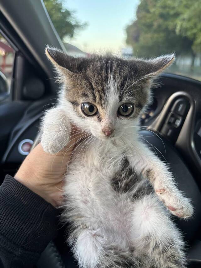 Dieses kleine tabby-weiße Katerchen hatte keinen einfachen Start: unsere liebe Tierschützerin und Tierheimleitung Dia fand ihn zufällig, als sie gerade auf dem Weg ins Tierheim war. Zwischen all dem Trubel entdeckte sie den winzigen, schmutzigen kleinen Kerl. Sie sicherte ihn sofort und nahm ihn mit. Eine Begegnung, die sein Leben verändert hat.