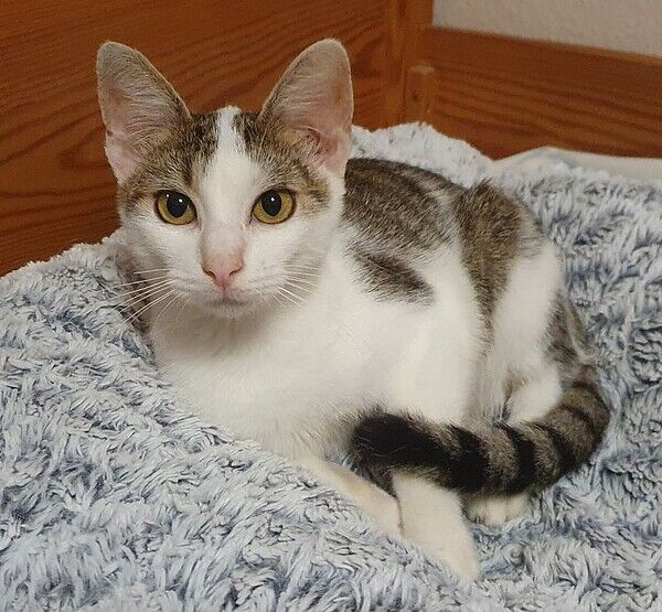 10 Monate | | Farbe: | getigert und weiss | | Kastriert/Sterilisiert: | Ja | | Impfungen: | Ja | | | | | Interesse? | Zu den Kontaktdaten! | Charakter: Pando ist ein junger schlacksiger Kater, der ein neues Betätigungsfeld sucht. Er ist sehr menschenbezogen und verschmust und mag Menschen und seine Artgenossen, so dass wir uns Pando gut als Zweitkatze vorstellen können.