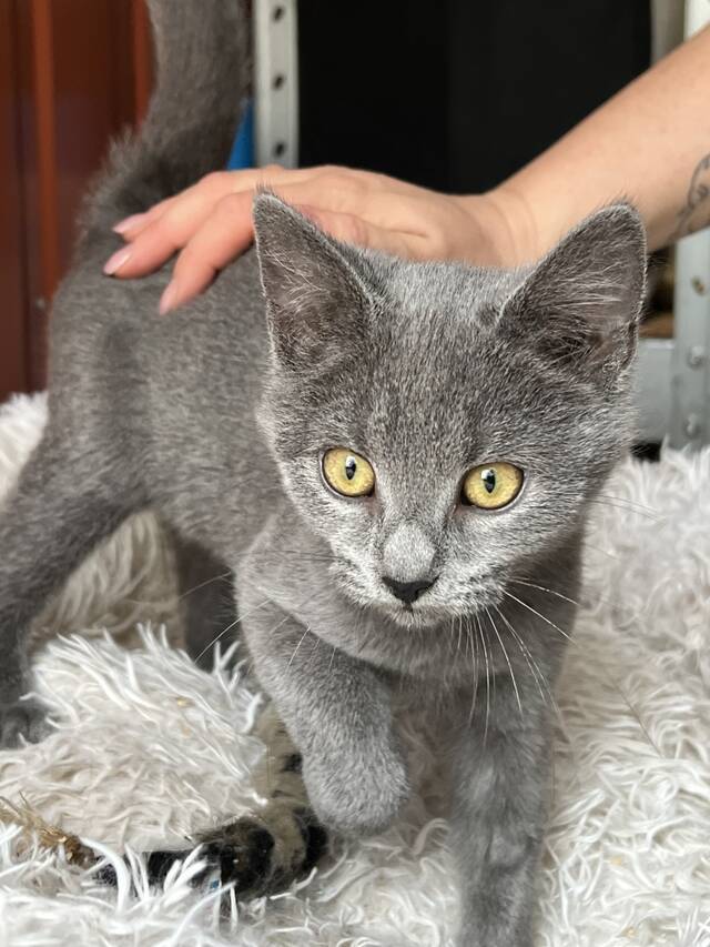 Es dauerte nicht lange, bis klar wurde, dass in Bijou nicht einfach ein Kätzchen steckt, sondern ein kleiner Wirbelwind in einem glänzenden, wunderschönen Silberfell. Ihre Energie ist grenzenlos, ihre Begeisterung ansteckend, und ihr Bewegungsdrang… nun ja, kosmisch trifft es ziemlich gut. Damit dieses Kraftpaket ihren Elan auf gesunde Weise ausleben konnte, stellte Kriszti sie einem zweiten Neuankömmling vor: Dior