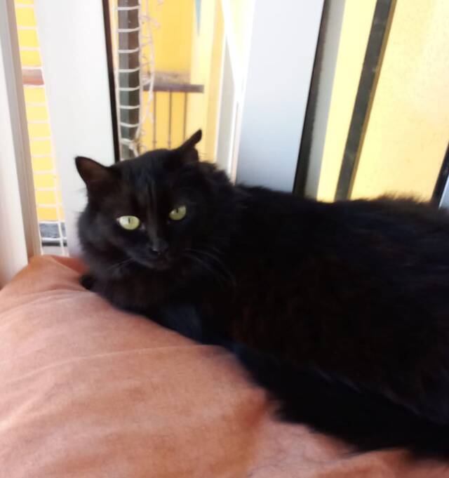 Chiqui (geb. 15.03.2024) ist eine schwarze Langhaardame, sie ist ein Fundtier und wurde in einer Pflegestelle aufgenommen. Sie ist eigentlich nicht menschenscheu, benötigt aber eine Eingewöhnungszeit. Beweismittel 😊: