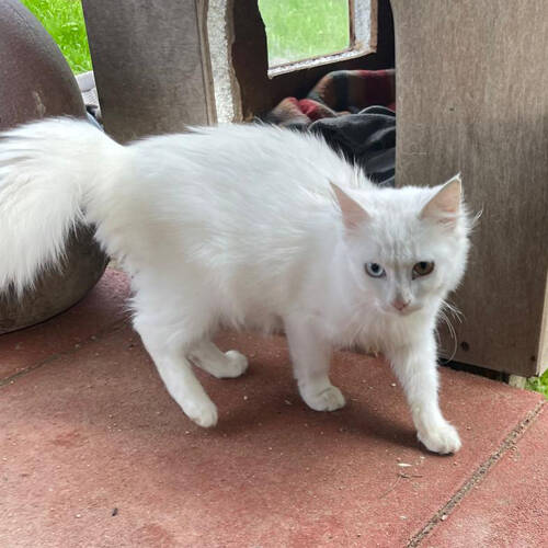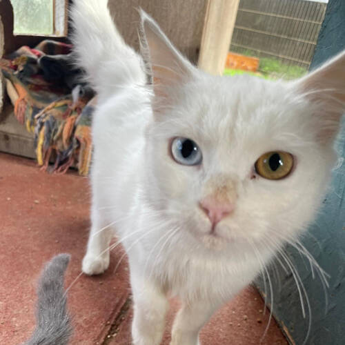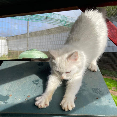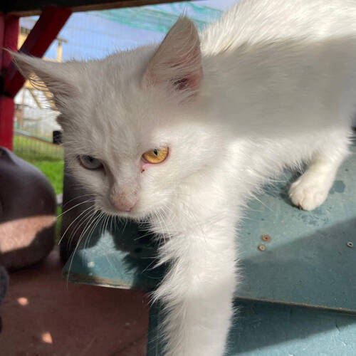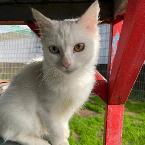 Der kleine Mimo ist wirklich entzückend mit seinem langen schneeweißen Fell und den verschiedenfarbigen Augen. Als sehr menschenbezogenes Katzenkind würde er sich bestens für eine Familie eignen, selbst wenn diese noch keine Katzenerfahrung haben sollte. Alles, was er sich wünscht, ist ganz viel Liebe, die Nähe zu anderen Katzen im passenden Alter und die Möglichkeit, die Welt dort draußen zu erkunden, wenn er sich richtig eingelebt hat.