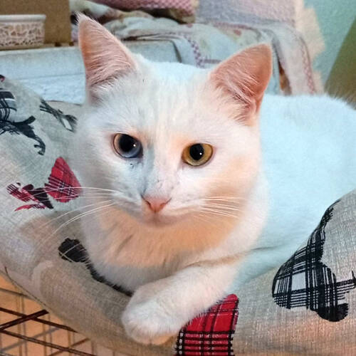 Neve ist Mutter drei weißer Kätzchen, mit denen sie gemeinsam von einem Parkplatz gerettet wurde. Neve zeigt sich zutraulich, gutmütig und liebt nicht nur ihre eigenen, sondern auch Menschenkinder. Gerne würde sie endlich richtig ankommen und ihr Für-immer-Zuhause finden.