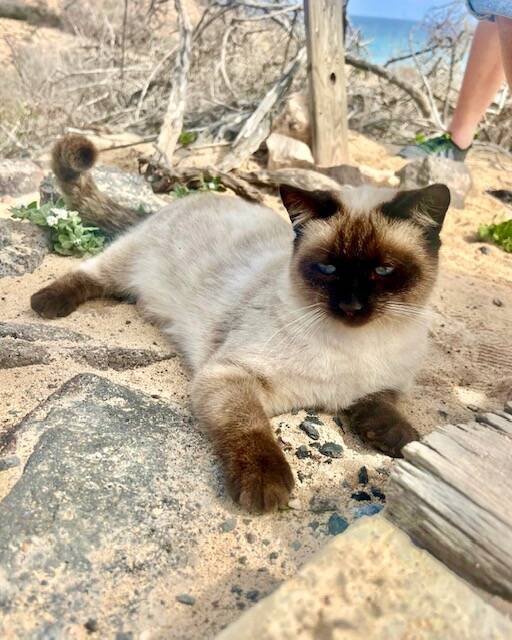 Unser hübscher Finn wurde im Dezember 2024 am Futterplatz des H10 Playa Esmeralda Hotels ausgesetzt – wie so viele andere leider unkastriert. Kurz nach Weihnachten konnte ihn unsere Katzenbeauftragte Sabine Rösch sichern und zu Tierärztin Dr. Ana an die Costa Calma bringen, wo er kastriert sowie gegen Flöhe behandelt und durchgecheckt wurde.