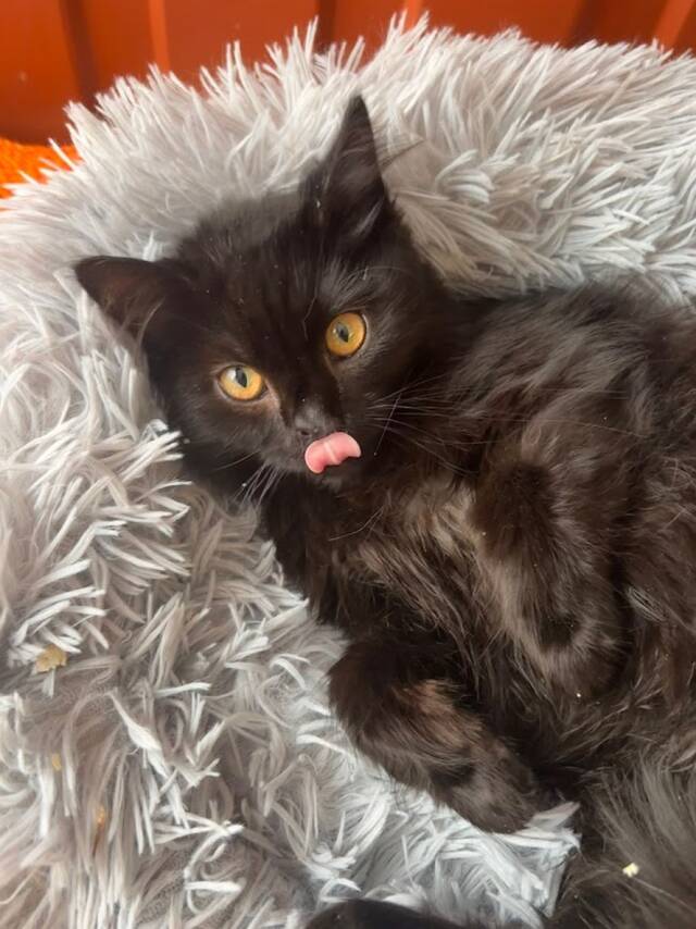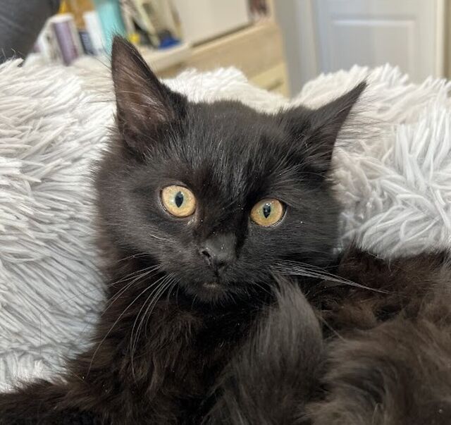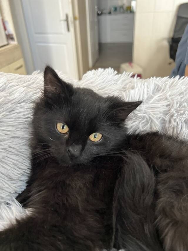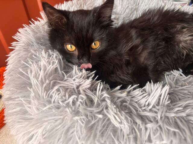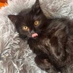 Tiana ist eine atemberaubend schöne, langhaarige schwarze Katze voller Energie und Entdeckergeist. Für sie ist die Welt ein einziger Abenteuerspielplatz: Kein Spielzeug ist vor ihr sicher, kein Winkel bleibt lange unerforscht. Sie ist verspielt, lebhaft und liebt es, aktiv zu sein. Gleichzeitig ist Tiana sehr freundlich, menschenbezogen und sucht die Nähe zu ihren Menschen – auch wenn sie manchmal einen kurzen Moment braucht, um Vertrauen zu fassen.