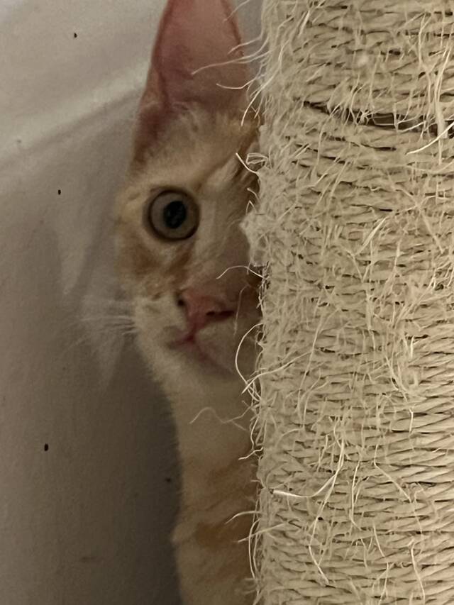 Ihre Geschichte: eines Tages tauchte sie zusammen mit ihren Geschwistern auf mysteriöse Weise in einem Haus mit mehreren Hunden auf. Die Hausbesitzer waren verblüfft, da ihre Hunde normalerweise alle Katzen verjagen, die es wagen, ihr Grundstück zu betreten. Die Kätzchen suchten in ihrer Angst Zuflucht unter den Möbeln, was es unglaublich schwierig machte, sie wiederzufinden. Leider waren die Kätzchen extrem verwildert, und die Hausbesitzer wussten, dass sie sie in der Nähe der Hunde nicht schützen konnten. Sie wandten sich an Kriszti und baten sie um Hilfe bei der Suche nach einem neuen Zuhause für die kleine Familie.
