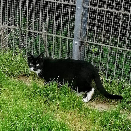 Die pechschwarze Fara mit dem weißen Schnäuzchen ist nach wie vor etwas schüchtern und wird Liebe und Geduld brauchen, um sich an das enge Zusammenleben mit Zweibeinern zu gewöhnen. Mit den anderen Katzenkindern im Gehege versteht sie sich prima und zeigt sich verspielt und munter, weshalb sie sich natürlich auch in Zukunft die Nähe zu Artgenossen im passenden Alter wünscht – und nach der Eingewöhnung möchte süße Kater natürlich wieder Gras unter den Pfötchen spüren dürfen.