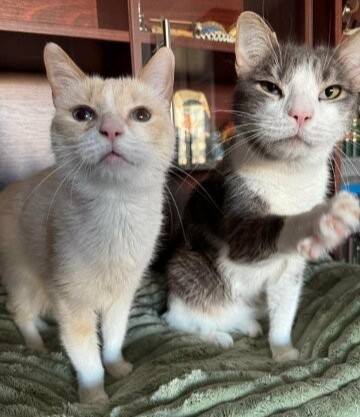 Für dieses pflegeleichte und liebe Katzenpärchen suchen wir ein liebevolles Zuhause. Gern auch eine Pflegestelle.