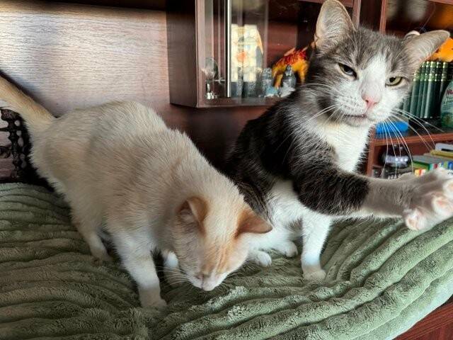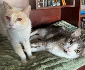 Tezy (männlich, weiß-grau getigert), Blue (weiblich, weiß-pfirsichfarben), geb. ca. 2019, kastriert, geimpft, entwurmt, gechipt, EU-Heimtierpass, vor Ausreise Test auf FIV und FeLV
