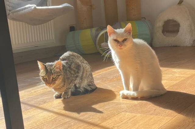 Mit den anderen Katzen auf der Station verstehe ich mich bestens. Insbesondere mit Flocke und dem Stationskater verbringe ich viel Zeit - wir rennen morgens und abends um die Wette und liefern uns wilde, ausgelassene Spielrunden. Dabei hat es mir der Stationskater aber besonders angetan – so ein verspielter Katerkumpel ist schon was Feines.