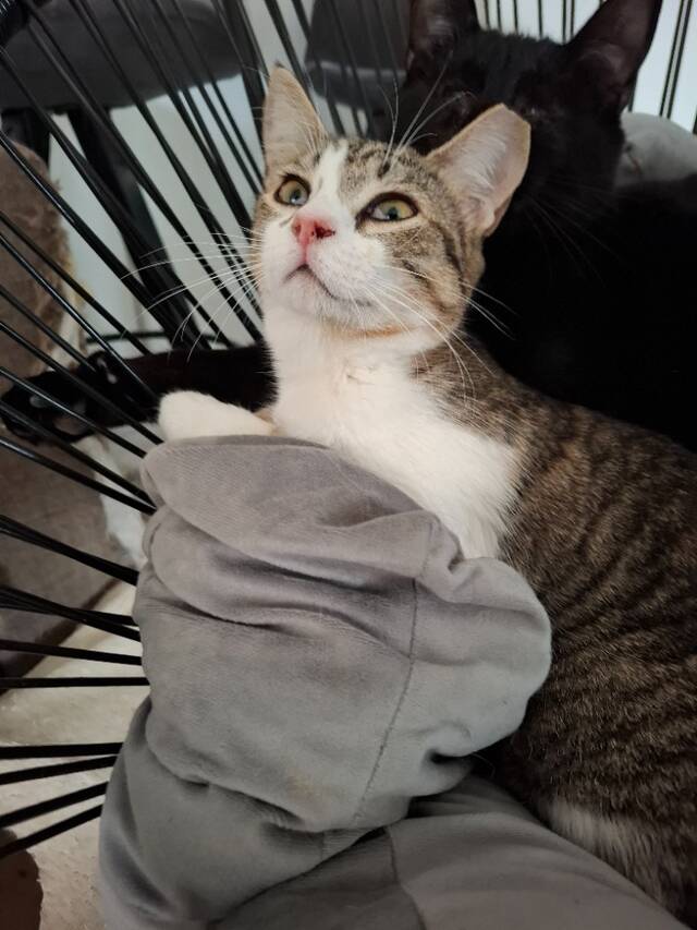 April 2026: Mia und Fabio sind zwar keine Geschwister, gehören aber zusammen wie Pech und Schwefel. Die Beiden wurden zeitgleich im Alter von etwa drei Wochen von einer Tierfreundin aufgenommen und haben seitdem ihren Weg gemeinsam bestritten, weshalb sie nur im Doppelpack vermittelt werden. Beide sind geschätzt sieben Monate alt, freundlich verschmust und bereits an das Katzenklo gewöhnt. Sie kennen andere Katzen und auch Hunde.