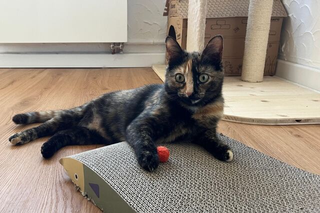 Name: Daisy Geboren: ca.10.06.2025 Alter: ca. 9 Monate Rasse: Europäisch Kurzhaar Geschlecht: weiblich Kastriert: ja Geimpft: Katzenschnupfen, -seuche, Tollwut Gechippt: ja Farbe: tricolor/schildpatt Katzenaids (FIV): negativ Leukose (FeLV): negativ Krankheiten: keine bekannt Handicap: nein Katzenverträglichkeit: ja Hundeverträglichkeit: unbekannt Kinder: unbekannt Aufenthaltsort: 50769 Köln