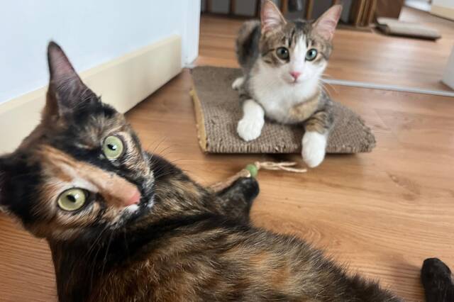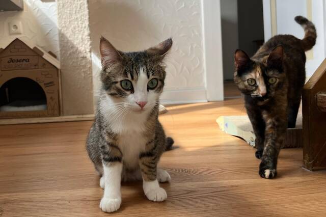 Name: Daisy Yoshi Geboren: ca.10.06.2025 Alter: ca. 9 Monate Rasse: Europäisch Kurzhaar Geschlecht: weiblich männlich Kastriert: ja Geimpft: Katzenschnupfen, -seuche, Tollwut Gechippt: ja Farbe: schildpatt getigert mit weiß Katzenaids (FIV): negativ Leukose (FeLV): negativ Krankheiten: keine bekannt Handicap: nein Katzenverträglichkeit: ja Hundeverträglichkeit: unbekannt Kinder: unbekannt Aufenthaltsort: 50769 Köln