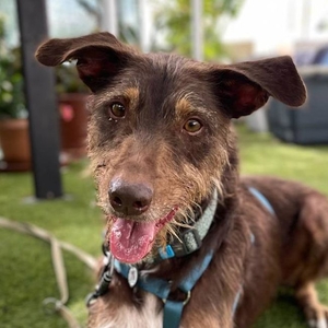 Thorpy (*ca. 02/2021, ca. 60 cm) ist ein wunderschöner, schokobrauner, langhaariger Podenco-Mix-Boy, der ...
