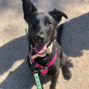 Cera (*ca. 2024, ca. 55 cm) ist eine junge, schwarze Schäferhund-Mischlingshündin, die mit ihrer Energie und ... |